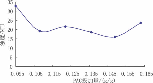 ( 1) 當PAC 投加量為0. 136 g /g 時,濾餅的過濾含水率較低,為72. 55%,而投加量為0. 149 g /g 時,離心上清液濁度較低,為17 NTU。